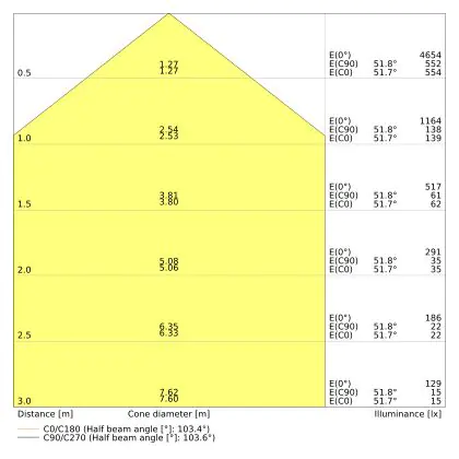 Der Abstrahlwinkel bezeichnet den Winkel, in dem das Licht aus der Lichtquelle ausgestrahlt wird. Er wird in Grad (D) angegeben. Je geringer die Gradzahl des Abstrahlwinkels ist, desto kleiner ist auch der Durchmesser des Lichtkegels, den die Lichtquelle produziert.