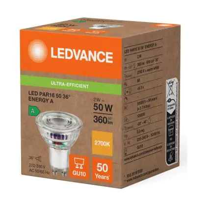 Ledvance LED PAR16 GU10 Reflektor 2W 360lm 36D - 827 | Ersatz Für 50W