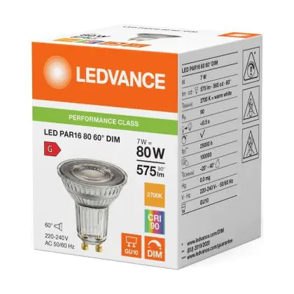Ledvance LED PAR16 GU10 Reflektor 7W 575lm 60D - 927 | Höchste Farbwiedergabe - Dimmbar - Ersatz Für 80W