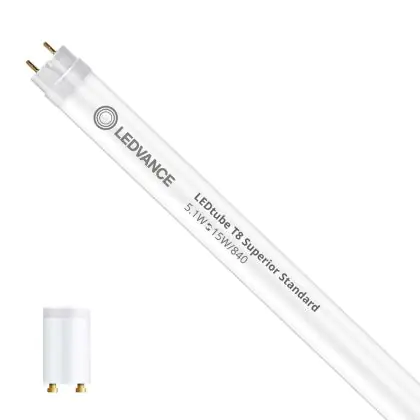 Bei der Ledvance LED Röhre 44cm | 4000K 5.1W - Superior handelt es sich um eine energieeffiziente LED-Röhre. Sie ersetzt Ihre konventionelle Leuchtstoffröhre mit 15W. Die Röhre ist 450 mm lang und hat die Farbtemperatur 4000K - Kaltweiss. Die durchschnittliche Lebensdauer der LED-Röhre beläuft sich auf 75000 Stunden. Wir bieten Ihnen für dieses Produkt eine Garantie von 5 Jahre an.