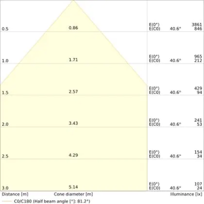 Le code couleur se compose de l'indice de rendu des couleurs (IRC) et de la température de couleur (Kelvin). Le premier chiffre indique le rendu des couleurs (1 = très mauvais rendu des couleurs, 9 = meilleure authenticité des couleurs). Le deuxième et troisième chiffre indiquent la température de la couleur. Exemple : Le code couleur "830" indique que la lampe a un bon rendu des couleurs (8) et une couleur de lumière blanche chaude (30 = 3000K). |