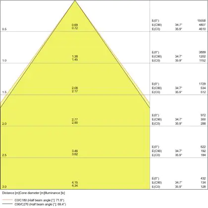 Le code couleur se compose de l'indice de rendu des couleurs (IRC) et de la température de couleur (Kelvin). Le premier chiffre indique le rendu des couleurs (1 = très mauvais rendu des couleurs, 9 = meilleure authenticité des couleurs). Le deuxième et troisième chiffre indiquent la température de la couleur. Exemple : Le code couleur "830" indique que la lampe a un bon rendu des couleurs (8) et une couleur de lumière blanche chaude (30 = 3000K). |