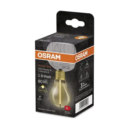 Cette ampoule Osram Vintage 1906 LED E27 Special Filament Claire 1.8W 80lm - 827 | Remplacement 15W est l’alternative idéale pour la remplacement de votre ampoule classique de 15 W. La technologie LED intégrée vous offrira de nombreux avantages. Les ampoules à incandescence traditionnelles ont une durée de vie limitée. Cette alternative LED vous permettra de profiter d’un éclairage durable et fiable.