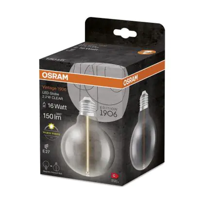 Cette ampoule Osram Vintage 1906 LED E27 Special Filament Claire 2.2W Poire150lm - 827 | Remplacement 15W avec son efficacité lumineuse de lumen par watt vous permettra de profiter d’un éclairage de qualité. Avec sa durée de vie de 15000 heures, vous n’aurez pas à vous soucier de son remplacement avant quelques années.